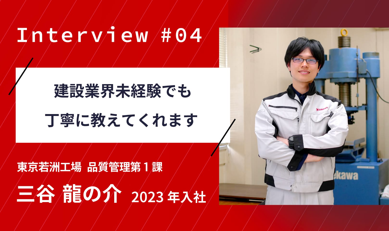 現場に出ると、暑いとか、寒いとか、そういったことはどうしても経験することになると思うので、決して楽な仕事とは言えないんですけど、ひとつひとつ新しい仕事を覚えていくことが楽しいと思える方には、達成感のある仕事だと思います。また、新しく覚えた仕事を自分なりにどんどん効率よく改善していけば、それが認められるような社風なので、改善が得意な方にはとても合う会社なのかなって思います。
